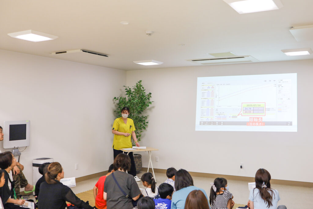 スライドや小さな体験コーナーを交え、近視が進む理由や、屋外での過ごし方・学習時の姿勢・画面との距離など、毎日取り入れやすいコツをご紹介しました。熱心に耳を傾けてくださり、たくさんのご質問もありがとうございました。